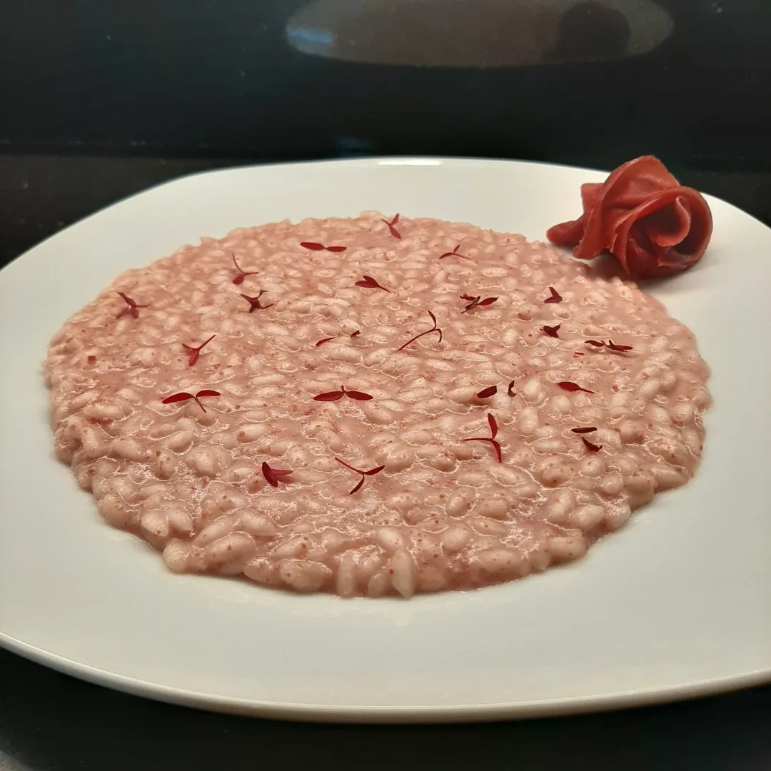 Il risotto al vino rosso e bresaola è un primo piatto che porta in tavola l'anima montana della Valtellina. Protagonista delle serate del GiroRisotti al Boogie Bistrot, questo risotto conquista con il suo colore intenso, quasi bordeaux, e il perfetto equilibrio tra il sapore deciso del vino rosso e la delicatezza della bresaola IGP.